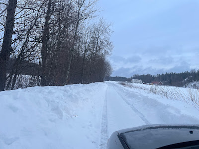 Mycket snö på isen och jag vet inte hur tjock isen är så tänk på säkerheten.